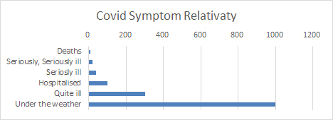 When one considers that deaths are just at the tip of the iceberg, there are loads more infections going on that come to nothing. This is demonstrated in this fictitious data showing the exponential variation between those that are ‘under the weather’ with covid-19, but still infectious and this that unfortunately pass away.