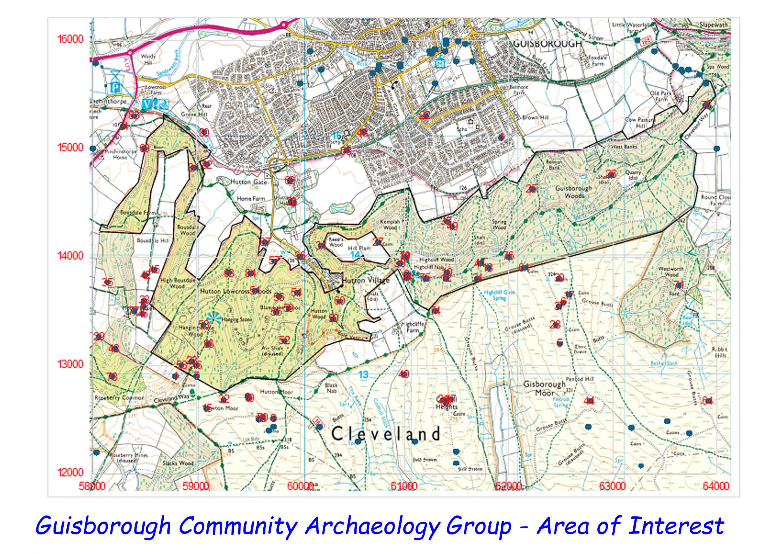 a map of sites has been developed for the Hutton Lowcross area: