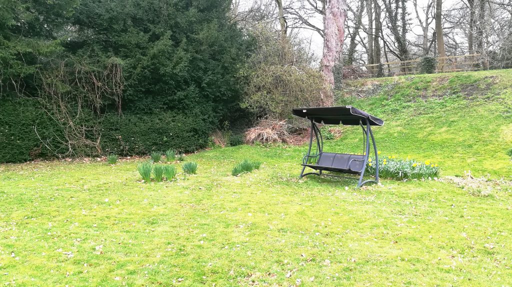 Being the first cut of the season I started with the blades a little high in the hope that by running over the green stuff it would neaten it up and also pick up all the leaves and twigs that had been deposited over the winter. The first bags of ‘cuttings’ were mainly leaves with a bit of green stuff, so i put that on the leaf pile, ready to rot down to leaf mould by next spring. Last year’s leaf pile appears to have rotted down nicely. I must find time to bag that up and store for use later. The rest of the lawn (?) has now been mowed and the cuttings deposited in another pile for composting. I had removed last years compost earlier in Spring and spread over the borders as a mulch.